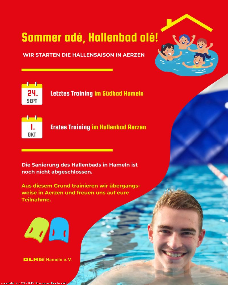 Das letzte Training im Südbad Hameln findet am 24. September statt.
